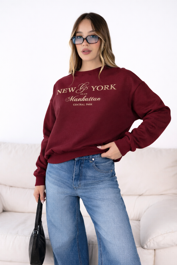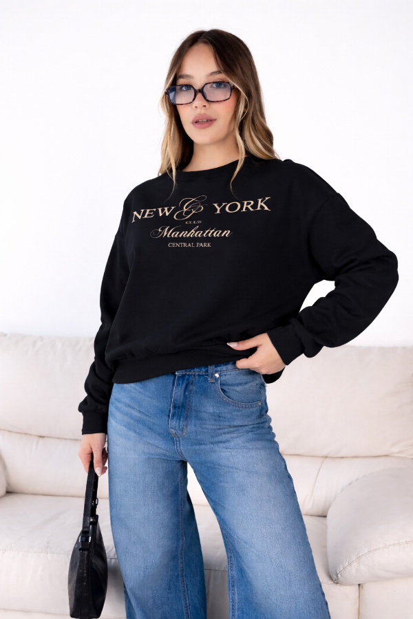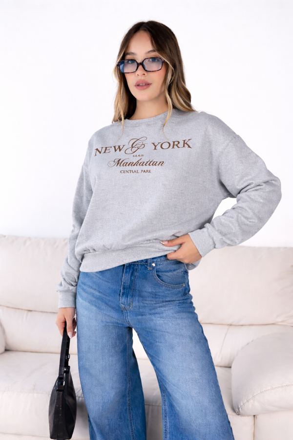 Buzo de algodon con frisa con terminacion en puños y estampa. Va para talles S y M